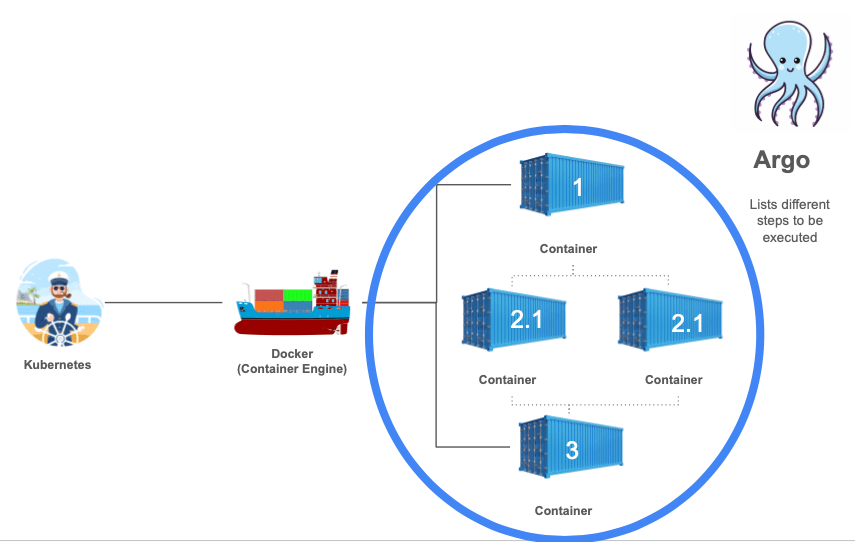 - Argo Workflows are like the shipping manifest: specifying the sequence of operations to be performed, and ensuring that the containers reach their destination in the correct order.