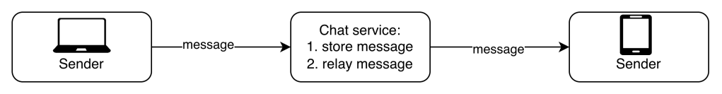 - Chat server 2 forwards the message to User B. There is a persistent WebSocket connection between User B and Chat server 2.