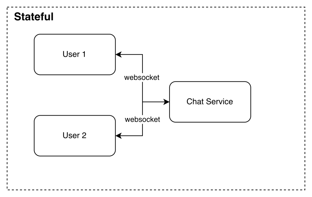 The only stateful service is the chat service. The service is stateful because each client maintains a persistent network connection to a chat server.