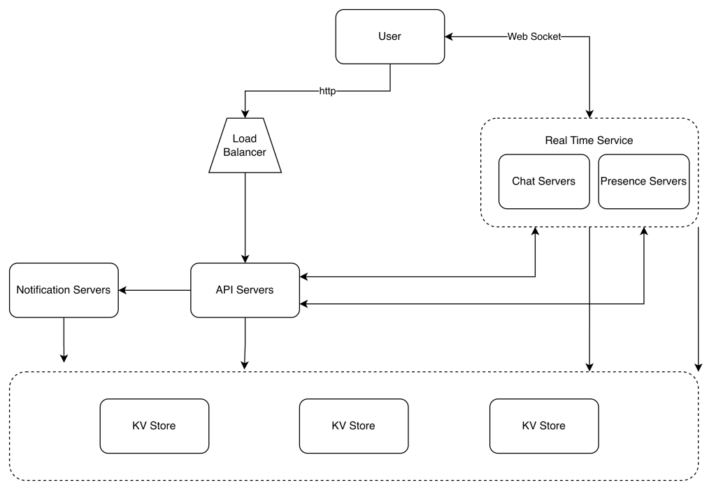 - Finally, the key-value store is used to store chat history. When an offline user comes online, she will see all her previous chat history.
