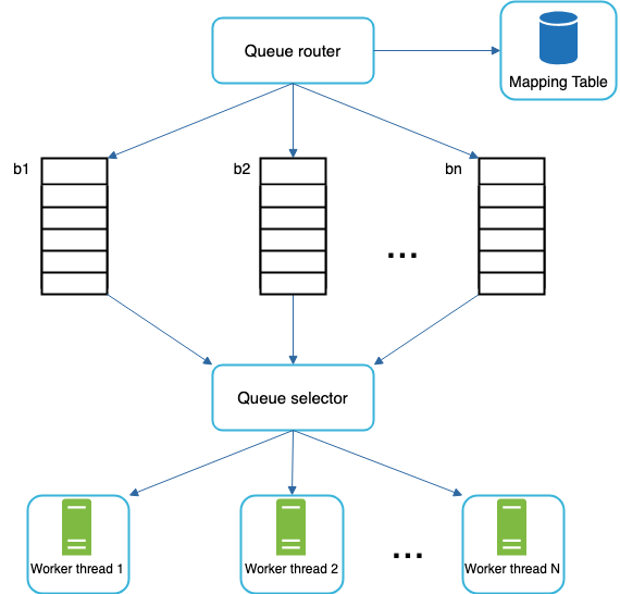 - Queue selector: Randomly choose a queue with a bias towards queues with higher priority.